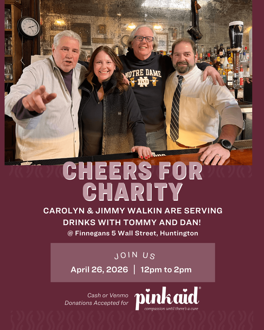 Guest Bartending with our Community Committee Chairperson on Long Island, Carolyn Walkin April 26, 2026, 12pm - 2pm @ Finnegans, 5 Wall Street, Huntington NY. Cash and Venmo Donations Accepted…